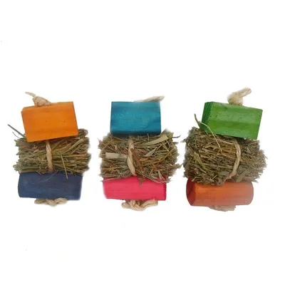 • Um suporte com dois sanduíches de feno em rama e pinus que você pode deixar à disposição dos roedores;