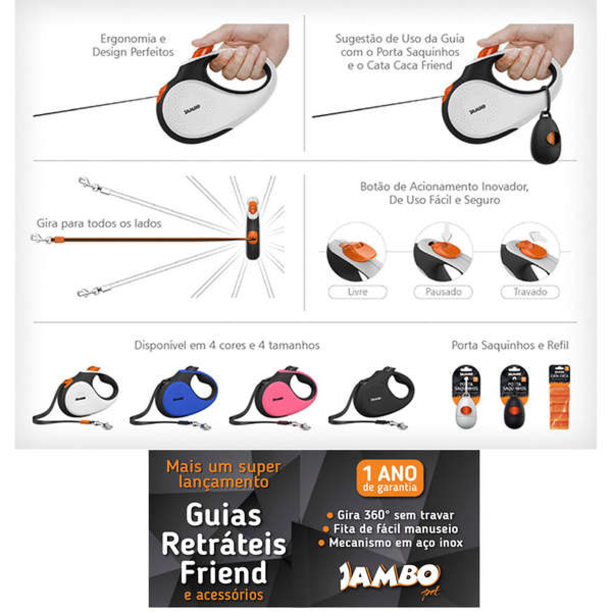 Jambo Guia Retrátil Friend Grande Preta