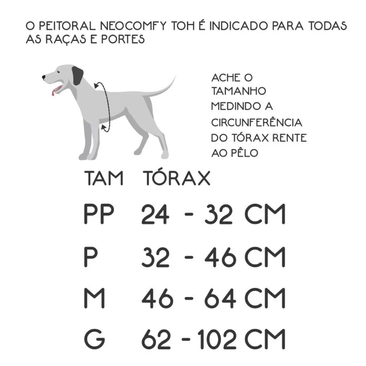 ATENÇÃO: MEDIR A CIRCUNFERÊNCIA DO TÓRAX E PESCOÇO DE SEU PET E VERIFICAR NA SEGUNDA IMAGEM DO PRODUTO O TAMANHO CORRETO ANTES DE CONCLUIR A COMPRA PARA EVITAR DEVOLUÇÕES.