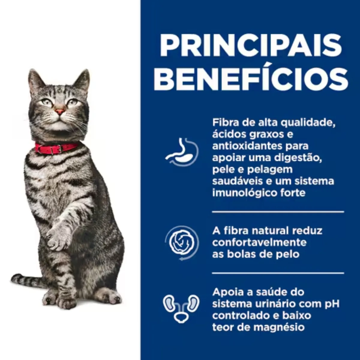Hill's Science Diet Urinary Hairball Control é uma ração super premium indicada para gatos adultos para apoiar a saúde de todo o sistema urinário e ajudar a evitar a formação de bolas de pelo.
