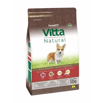 A linha Vitta Natural é formulada com proteínas de alta qualidade e é enriquecida com todas as vitaminas e minerais necessários para que os cães vivam saudáveis e felizes. Elaborado com ingredientes naturais e cuidadosamente selecionados, o produto Vitta Natural Adultos Raças Pequenas Seleção de Carnes e Arroz, além de muito saboroso, não possui corantes e aromatizantes artificiais. Promove também a saúde intestinal, através da associação de fibras naturais com prebiótico, e auxilia para uma pelagem bonita, pela presença do ômega 6.