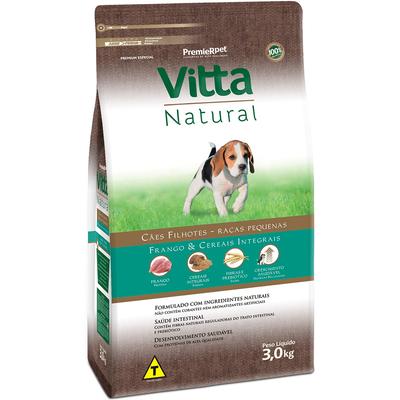 A linha Vitta Natural é formulada com proteínas de alta qualidade e é enriquecida com todas as vitaminas e minerais necessários para que os cães vivam saudáveis e felizes. Elaborado com ingredientes naturais e cuidadosamente selecionados, o produto Vitta Natural Filhotes Frango e Cereais Integrais, além de muito saboroso, não possui corantes e aromatizantes artificiais. Promove também a saúde intestinal dos filhotes, através da associação de fibras naturais com prebiótico.