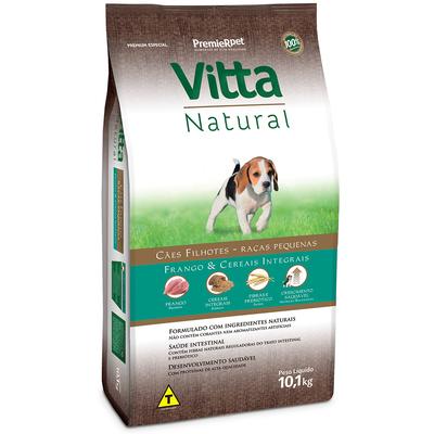 A linha Vitta Natural é formulada com proteínas de alta qualidade e é enriquecida com todas as vitaminas e minerais necessários para que os cães vivam saudáveis e felizes. Elaborado com ingredientes naturais e cuidadosamente selecionados, o produto Vitta Natural Filhotes Raças Pequenas Frango e Cereais Integrais, além de muito saboroso, não possui corantes e aromatizantes artificiais. Promove também a saúde intestinal dos filhotes, através da associação de fibras naturais com prebiótico.