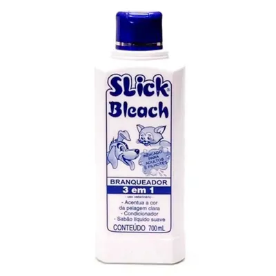 Slick Shampoo branqueador completo, foi desenvolvido especialmente para higiene e cuidado de cães e gatos adultos e filhotes. Sabão líquido desenvolvido para cães e gatos de pelagem branca, elaborado especialmente para acentuar a cor branca, com seu pH balanceado, que limpa e perfuma sem prejudicar a pelagem e pele do animal.