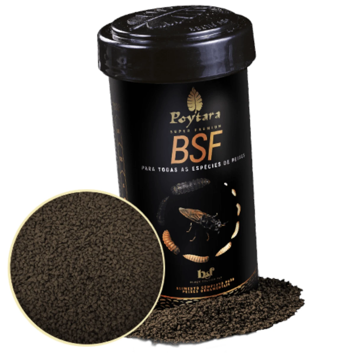 Um diferencial expressivo da BSF Black Soldier Fly é que em sua formulação não contém extrativismo marinho e corantes artificiais, proporcionando uma alimentação mais saudável e sustentável para seus peixes. É um alimento que pode ser utilizado diariamente em conjunto às demais rações Poytara ou em dias alternados ao longo da semana.