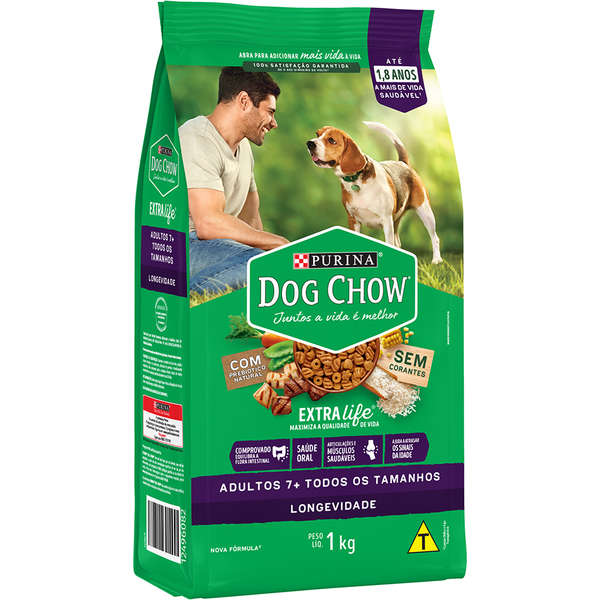 Ração Dog Chow Longevidade Para Cães 7+ de Todos os Tamanhos Sabor Carne, Frango E Arroz 1Kg
