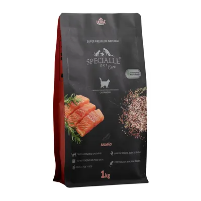 SPECIALLE PET CARE FELINE SUPER PREMIUM NATURAL CASTRADOS SABOR SALMÃO é um alimento Super Premium Natural, elaborado com ingredientes nobres de alta qualidade. Indicado para gatos com idade superior a 12 meses de vida. É um alimento completo, rico em nutrientes que auxiliam na saúde e bem-estar do animal.