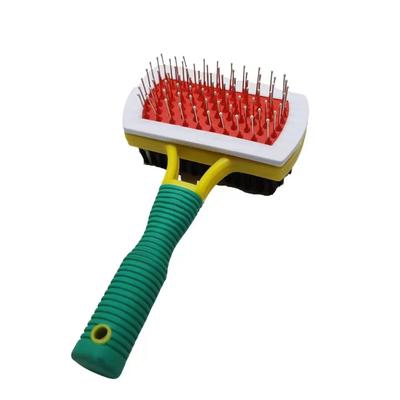 A Rasqueadera de cerdas de aço dupla face, é um ótimo produto para você que quer escovar o seu animal seja ele, gato ou cachorro suas funções, são remover os pelos soltos do seu animal evitando encher a casa de pelo no chão, sofá ou locais que seu pet gosta de ficar que tenha tecidos e também ajuda a manter o dono sem aqueles, montes de pelos pelas roupas que incomoda bastante.