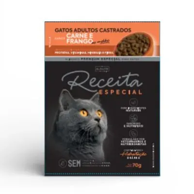 Sachê Receita Especial Gato Castrado Carne e Frango 70g